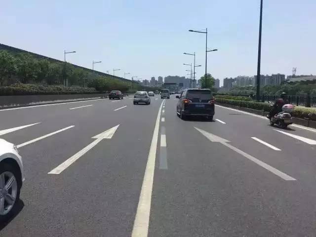 下面就是大家非常熟悉的双黄实线了,禁止跨越,用以分隔对向行驶的交通。