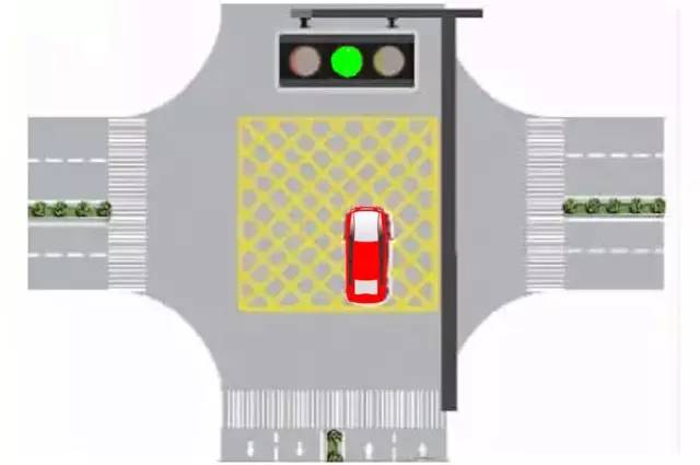 2、前方处于绿灯状态,将车停在路口画有黄色网格线(禁止停车区)范围内的,此种情况属于“闯绿灯”。