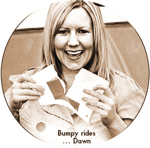 在后来的几年中,道恩又参加了几次驾照考试,道恩不是因为开车太慢,就是没有注意倒车镜,或者搞错了交通信号,反正每次驾照考试她都没及格。失望的道恩决定尝试学开更小的机动车――机动脚踏两用车。道恩说:“我确信我可以通过更小的机动车驾驶考试,所以我花2000英镑买了一辆机动脚踏两用车和一个安全头盔。”这个安全头盔显然买对了,因为道恩在学开机动脚踏两用车时又发生了车祸。道恩说:“主考官要求我停车,可车轮却仿佛失去了控制。”