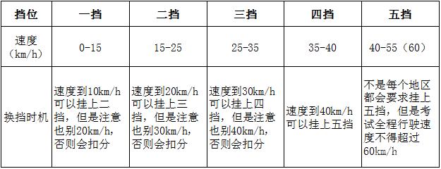 教练往往会告诉学员,每个档位都有一个大概的速度,“技巧”就是,当速度达到10km/h,升二档;速度达到20km/h,升三挡;当速度达到30km/h,升四档;当速度达到40km/h,升五档。