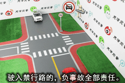 图中驶入禁行路段的红车撞上了白车,所以红车负全责。