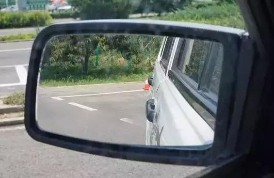 2、从右后视镜里来看,此时车身到右侧边线的距离应该差不多有1指;