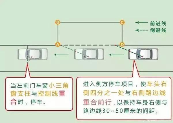 侧方停车要求学员在库前一次性靠右将车辆倒入库中,期间不得压线、停车。看完下面的九张图,相信大家一定会对侧方停车应该有更清晰的认识的。