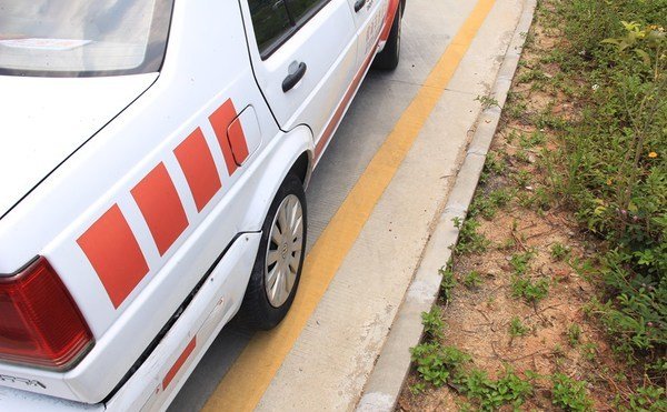 这也是最多人出现错误的地方,如前所说,一定要先调整后视镜能清晰看到后轮,其次车速要慢,这样在后轮压到库边虚线时就能够及时向左打死方向了。