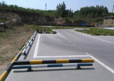 3、停车:在靠库过程中,当左后视镜下沿盖过停车线,就可以踩离合踩刹车停车,此时车尾已过前库线,前车轮压停车线。