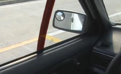 5、通过左后视镜观察,当左后轮与停车控制线重合时,迅速向左打死方向。