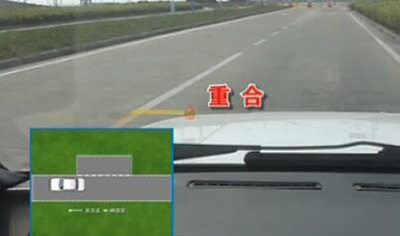 2、当后视镜越过前感应线时停车。