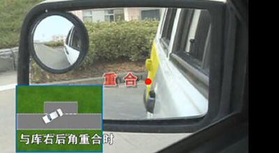 4、通过左后视镜观察,当车尾与库右后角重合时,迅速回正方向。