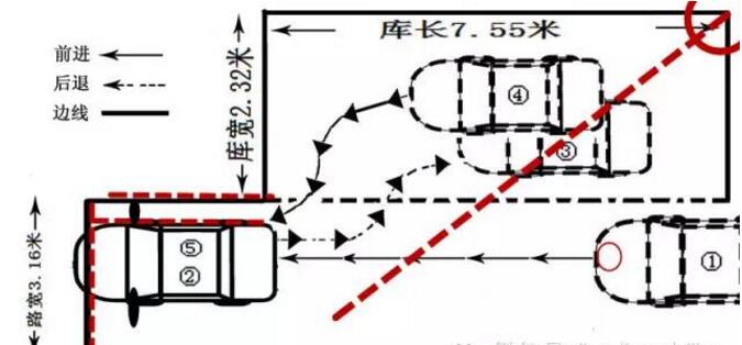 注意:这个过程中要控制好车身与车库边线的距离,保持30厘米左右。