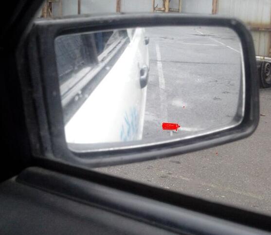 3、一开始直线后退,当库的左前角接近右后视镜下边缘前,迅速向右打一圈方向。