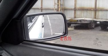2、前进的同时观察右后视镜,当发现库的左前角到了后视镜中间偏上的位置就可以停车了,挂倒档准备入库。
