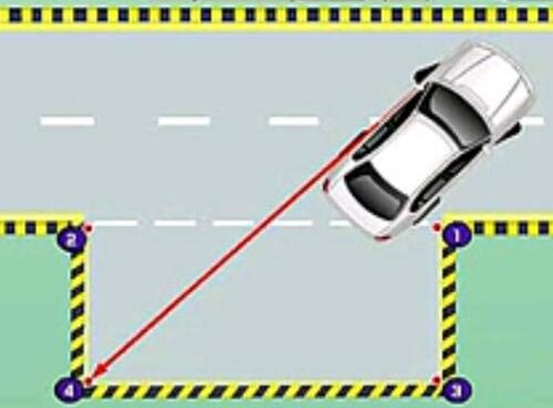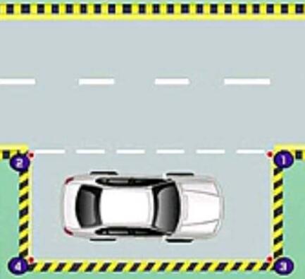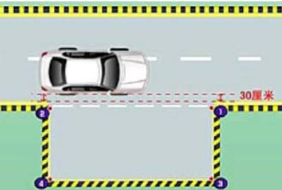 2、车尾越过库前边线,立即停车。此时有3个参考点可供灵活选择: