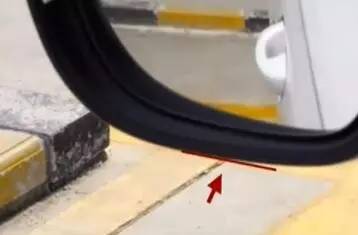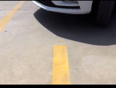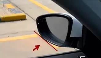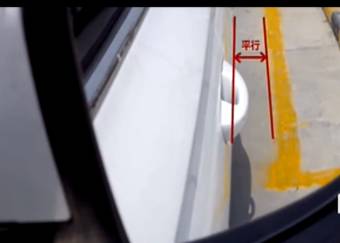 2、挂倒档,低速行驶,当左后视镜刚好盖过黄色虚线时,方向盘迅速向右打满,