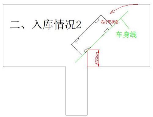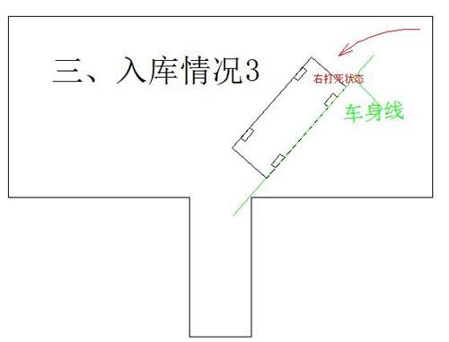 如果是情况①就没得救了,因为右车身线离边线太近,若刚出来右打死则右后尾扫线,若刚出来不打死,则车位入库时,左车尾要扫左库角,且左边会出线。