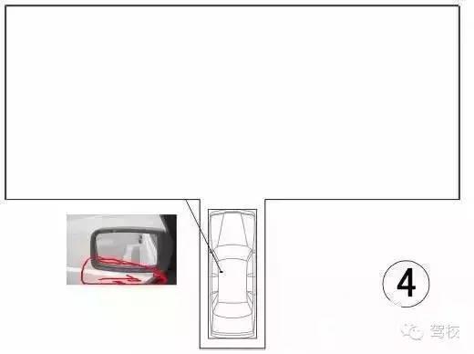 通过左侧反光镜下沿看到控制线,开始向右打方向,打死(一圈半)。