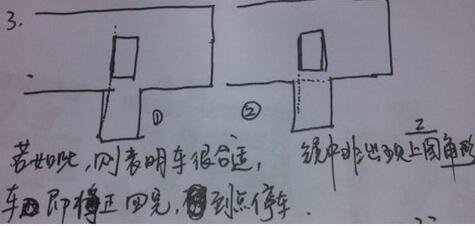5、若如下图所示,则说明打方向晚了,肯定会压线。