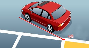 第三步,在车辆静止的状态下回正方向盘,令车轮摆正,在保证安全的情况下直线向后倒车到图上A点的位置,可以利用车门后视镜或者直接用眼睛查看路面,当左后轮的中心到达A点时,停车。