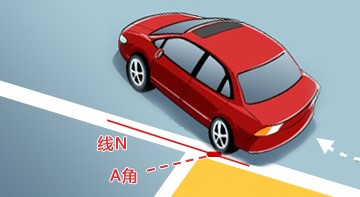 第五步,要做一前一退。在停车的状态下,将方向盘向右打到底,然后将车慢慢前行约50-70cm,请注意,后保险杠不要超出图上N线,停车,将方向盘反向左打到底,将车慢慢后退,左后轮在“枢轴转向区”的外周上时停车。