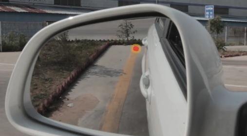 二次入库时,看的是右后视镜,车身与边线接近平行立刻回正方向