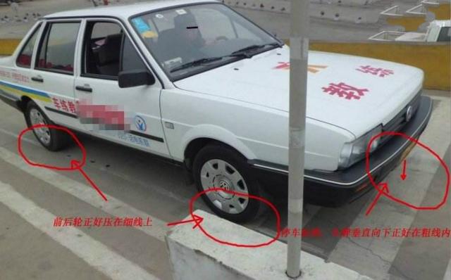 其中最中间的一条黄线是最重要的,只要汽车保险杠位于黄线上,就是满分,当保险杠位于中间黄线与前面一条黄线之间,扣10分,超过前面黄线但没有越过最前端黄线就扣20分,如果超过考试不及格。