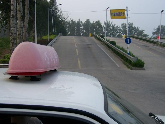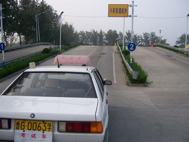 2、车行至坡道,当驾驶员位置与中心线平行时,停车;
