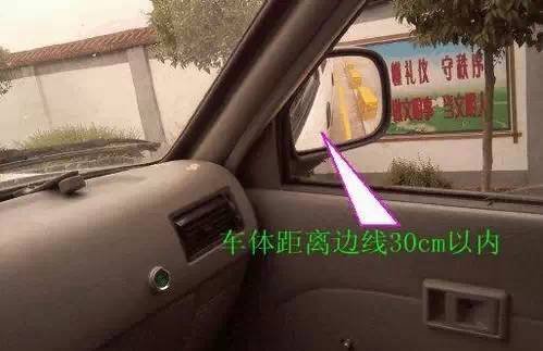 1、挂一档、打右转向灯,车体向右靠,观察右后视镜。 当车体右侧距离 ○ 6线750px以内时,回正方向轻踩油门保持在1500转直线行驶;