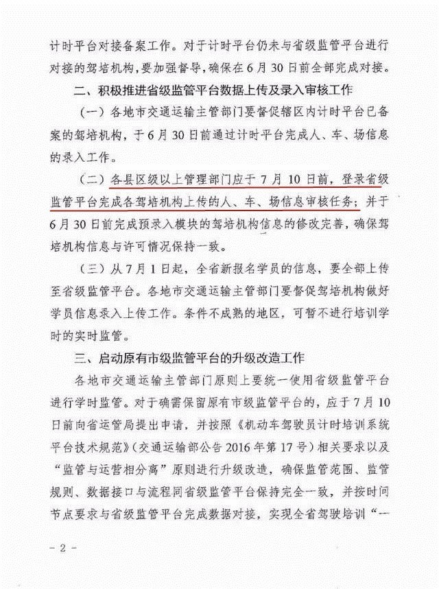 根据省厅通知,7月10日前,需完成人、车、地信息录入审核工作,新招学员信息必须全部上传至省级计时监督平台!