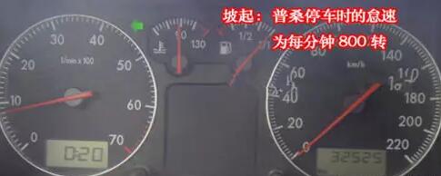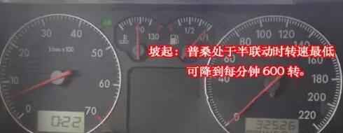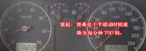 2、如果还是感觉不到的话,可以通过发动机转速的变化来判断。在抬离合的过程中,如果转速明显下降,就说明离合器抬到半联动状态了,这时候就可以坡起了。因此,考试的时候可以盯着转速表,当看见指针向下抖动,就可以稳住左脚,右脚松开刹车。