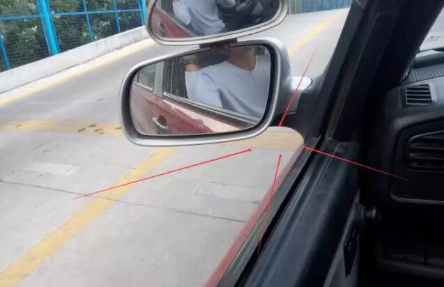 2、观察左镜底下,当中间实线在镜子底下完全露出后踩离合刹车、马上停车。