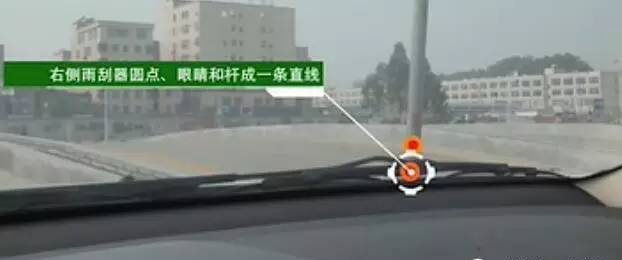 2、随着坡度加大,逐渐放松离合器。观察右侧雨刮器圆点,当圆点、眼睛和杆三点成一条直线的时候,迅速踩下离合器和刹车,停车。此时,车内语音会提示"定点准确"。