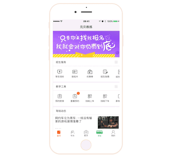 告别传统手写记录练车时长的情况。扫码上/下课,随练随录练车时间,出勤管理、学时分配、计时收费更方便!