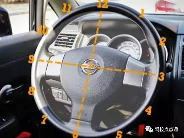 手扶方向盘时,两手一左一右,握在3、9点的位置,力度刚好握住即可,不能抓太紧。