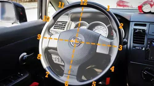 教练:双手扶方向盘时,不要像抓着自行车把一样用力,两手一左一右,3、9点位置,轻轻握住方向盘就好,不要用力抓。
