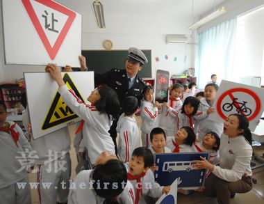 竞报讯(记者 钱昊安)昨天下午,在崇文小学里,几名三年级的学生正在舞台上表演“识交通标志”话剧。据崇文交通支队副支队长高云祥介绍,崇文区在全市率先将交通安全课正式列入三所小学的校本课程,每个学校每个月将开一次交通安全课。今后,将在全区28所中小学中推广开来,其中,在小学三年级以后,将采用模拟交通情景教学。