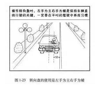 2、能正确把握方向盘(以左手为主操作方向盘),并能应用方向盘自由行程修正行驶方向;