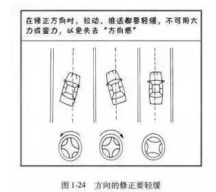 4、修正方向时,要早打、少打、有打有回,做到一手拉动一手推送,双手合力操作,保持车辆直线进行。