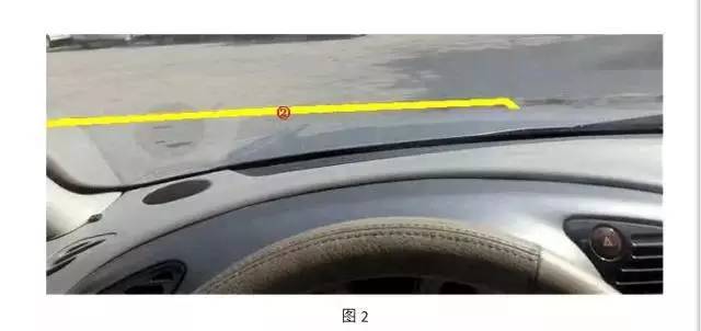 第二种方法:当发动机盖刚好挡住前边的线时,迅速向左打死方向盘(这个很关键啊)。观察后视镜当车身与边线平行时回正方向盘,匀速驶出即可。如图所示: