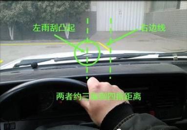 右边实线大概可能很多人会问怎么判断车子和右边实线的距离,我们可以看左边雨刮器的凸起部分,保持与3指的距离。