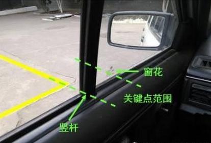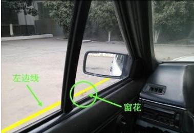 然后也要随时看看左边的车窗,要保持窗花和左边的实线保持平行。