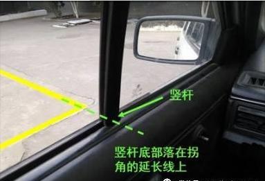然后就保持车子前行,当左边窗户的竖杆和左边的险平行时,这个时候就要开始转动方向盘了。