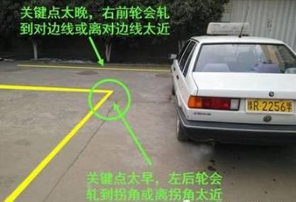 在直角转弯的时候,因为车距比较短,在驶入弯道的时候,很容易压倒线,这个时候我们的右边车轮要跟右侧的实线保持30-50厘米左右。
