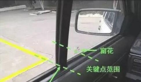技巧一:车身右侧靠近右边线前行,左(右)前车门三角窗中心点对准内(外)直角线时方向向左(右)打到底。