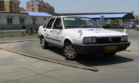 2、车辆进入直角时,用右雨刮器的铆钉处沿右侧边线行驶,以保持车身与右侧边缘线30cm以内的距离。