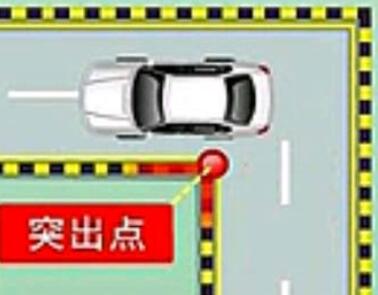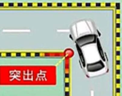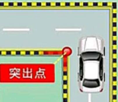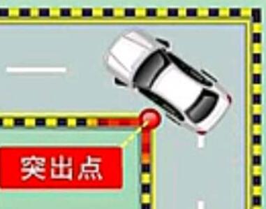 2、向左打死方向盘,此时有4个参考点供学员灵活选择: