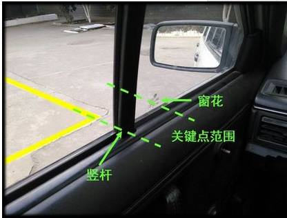 当左车窗黑色竖杆底部落在拐角水平延长线上时,向左打死方向。注意观察后视镜,当车身与边线平行时回正方向盘,匀速驶出考试区域即可。