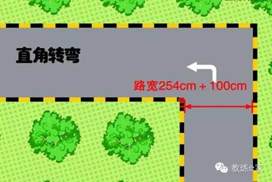 2、汽车进入直角弯之前,尽量靠右侧行驶,使自己看见车头的三分之一越过右侧边线;