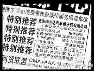 记者只是在报纸的分类广告上随机任选了10家汽车陪练公司,进行电话咨询,结果竟然有6家公司十分肯定地告诉记者,他们有这种“零基础”的陪练项目。