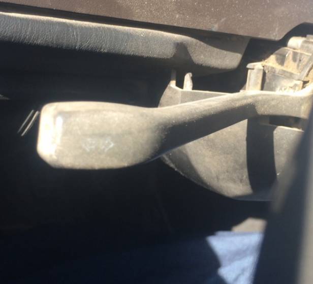 如图所示:将操作杆向方向盘的方向拉动一下,同时仪表盘中符号亮起,即为远光。再将操作杆向方向盘的方向拉动一下,同时仪表盘中符号熄灭,即为近光。