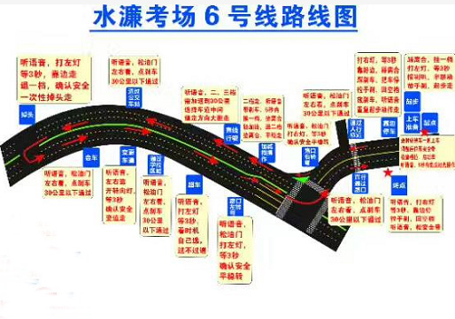 考试顺序:上车准备、起步、靠边停车、变更车道、路口左转弯、直线行驶、通过学校区域、直行通过路口、掉头、会车、通过公交车站、加减档操作、路口右转弯、通过人行横道、超车、考试终点。