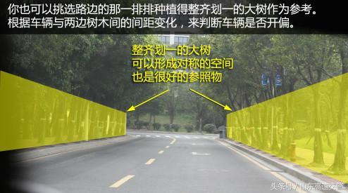 很多新手在宽阔的路段上行驶时,最容易把车辆开偏。原因是空间及视野过大,路边及标线上的参考会容易被弱化。